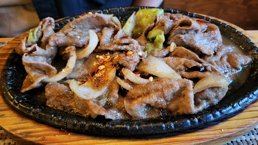 Next, let's talk about the food. We waited so long like that so we thought maybe the food is good. And as you can see in the pictures, they were burned. But the most disappointment was the bulgogi. I couldn't believe my eyes when they bring out that dish. Did they think we were stupid? Did they think we don't know what bulgogi look like? Their dish was just some boiled meet with some veg and a pepper on top. The order was over $18 and it was so ridiculous.