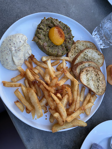 Read moreWas going to have a nice glass of red with the steak, but, was surprised that the selection was either, French, or, US. There was no Canadian selection, that has award winning wines, and the restaurant seems to pride itself on being locally sourced. After taking our order, the waitress/hostess, left without asking how I preferred my steak. I chased her down at the front, and advised her that I wished to have my meal, medium rare. She then told me that this is how they ALWAYS prepare their steaks. This seemed a little presumptuous, and was surprised to find my steak rare, and bleeding into the sauce, with a very fine layer of pink. I didn't complain, as this was how I preferred my filet, rare, and ordered it medium rare so my wife could try it. When the meal was presented to us, it was simply dropped off at our table. It seemed odd that a short description of ingredients, and preparation was not narrated, followed by an, "Enjoy." This was a first from a fine dining establishment for me. Not that there's much you can say about, Steak frites. At the very least something about the sauce, and I was curious as to what the scallops were resting on, as well as the ingredients, and preparation of the very nice apple dessert.
