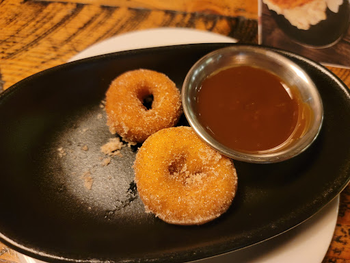 Read moreI've been to Montana's a couple times before and it is a brand name chain restaurant with a western BBQ theme. I had mentioned to my new Fiancé that I would love a good steak dinner for my birthday, and she totally surprised me by taking me to the Montana's in Moncton. Previously I have experienced long wait times to get into Montana's, but this time I was pleasently pleased to be able to walk in and request a booth, and one was cleaned for us right away, maybe a 5 mins wait which was completely acceptable. I always request a booth if available, for the privacy and ambiance. I was a little taken aback when they seated another couple directly accross from us, when many other booths were available. I could hear their conversation loud and clear without trying to listen, even to the point of drowning out my conversation with my Fiance.. so I know they could hear us as well. With there being soo many tables available, I would have thought the hostess would spread us out more, but from their standpoint, It is probably easier for them to group us all together. That was a minor point I've seen happen in many restaurants, and didn't ruin my experience. We were offered drinks right away, I always get diet pop and most chain restaurants offer free refills as did this one. We ordered our food quickly and being steak, I assumed it would take some time to cook. I find medium perfect, not too bloody like medium rare and not overcooked like medium well. It did take a reasonable amount of time to get our meal, but gave us time to chat, and we were in no hurry, It was my birthday afterall, so I was taking it all in. Usually they have sports on, but tonight the American Music awards were playing on the TV, but the house mucic was playing over the speakers which was all we could hear, and the sound system was very good.. I enjoy good thumbing bass and it wasn't overwhelming or obtrusive. When the food arrived, I was excited to dig in, as it's been a long time since I had a good steak at a nice restaurant. My Fiancé had chicken and I had the steak event, I upgraded to a 10 oz steak vs the basic 7 oz steak for an extra $5.00 which I thought was reasonable. I usually order fries, but must not have specified fries because I recieved patatoes au gratin, which was delicious. I was offered baked beans or Coleslaw.. I always go for the coleslaw as it is hard to find a good coleslaw in the grocery stores.. but I should have paid extra to get both. The steak was a perfect medium, just pink in the middle and nicely seared on the top and bottom.. It wasn't melt in my mouth soft like butter, but tasted great and I wished it was a little bigger like 12 oz. Montana's is not cheap, but acceptable as an occasional birthday treat. I would definitely recommend Montana's for an Adult night out, If kids were involved I would recommend Boston Pizza or East side Marios. My dinner included 4 little sugar coated donuts with a toffe like dipping sauce... they were good, but just not enough, so my Fiancé got the apple friiter topped with ice cream, that was to die for, I enjoy the ambiance of Montana's, the interior is very interesting built like an old barn, even has a chevy truck mounted in the rafters. I was very happy...