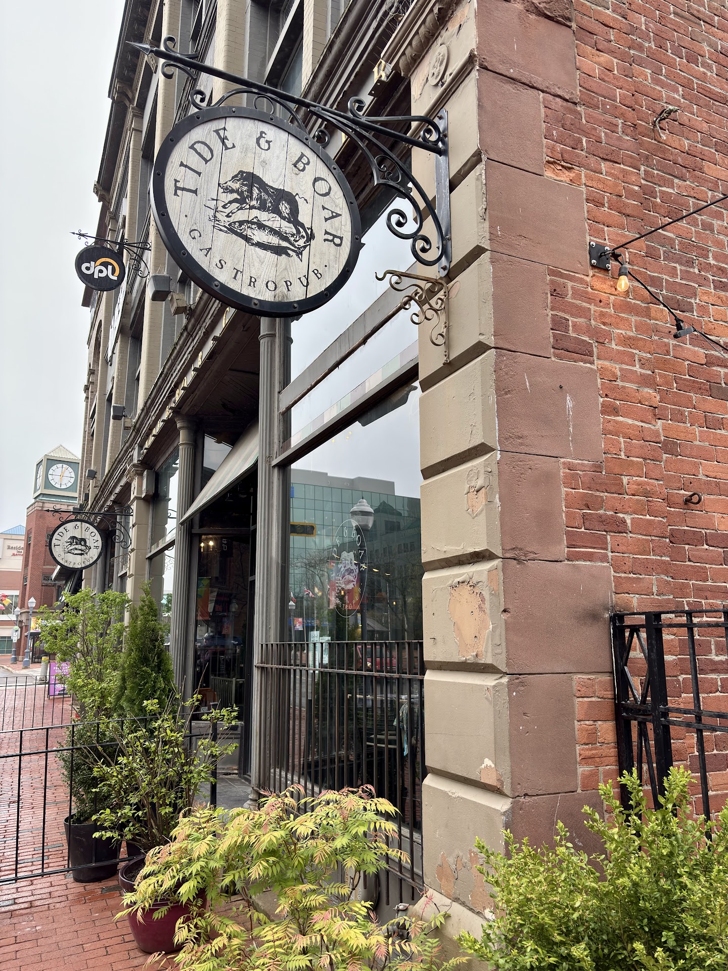 While in Moncton for a conference, I was looking for a place to grab a decent meal and catch up with an old high school friend. I hadn’t heard of the Tide & Boar Gastropub before this trip, but it was close to my hotel, and the reviews seemed promising, so we decided to give it a try. My son was also with me.