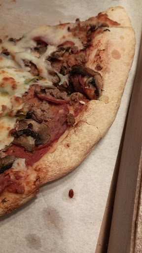 Then came my order. A 6" pizza. The crust was hard and powdery. It tasted like a frozen pizza. I ate two slices out of the 4 and set it to the side. This and the salad started to make me feel sick. And I only ordered hot water with lemon, so it wasn't anything to do with what I drank.