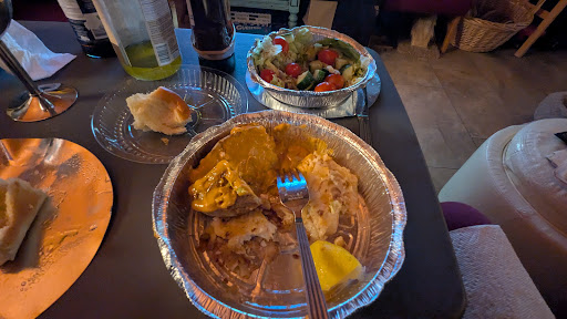 Then came out orders. My husband ordered the lasagna and garlic bread. The garlic bread was definitely not homemade. The lasagna was put into this metal tray that should've been thrown away honestly. But the taste of it tasted like a Stouffer's lasagna. Gross and lacking taste.