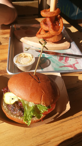 This restaurant has a fun atmosphere with beautiful outdoor views. But I'm unsure why they get high reviews for their burgers, they feel like they are frozen, they are thin and not juicy almost like theirs some kind of fillers but lack flavor at the same time. I mean still good but expensive. Ironically the fish burger tasted better and bigger. The onion rings are a must. The service was great. The owner is very welcoming and friendly although it was a busy day and he was short staffed. Having said all that we found the burger was not worth the price vs it's quality. The other foods (fish burger and onion rings) were very good and I would definitely go back for them if in the area. Also their poutine looks amazing so we will try...