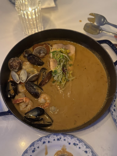 Read moreThe atmosphere is perfect. The staff is so friendly. The menu is limited but seems to have just enough options. It’s pricey. It is slow. It was my husband’s 50th birthday and our first night of arrival to this dreamy vacation. We decided to order the bouillabaisse to share - a warming seafood meal where the broth should create a stew. Our young child went with the kids’ menu. We were patient. We enjoyed ourselves, had soup and salads to start while we waited. When our meal arrived, it was beautiful … but the dish, served in its clay cooking dish, was cold. I don’t think it was chef’s fault. Someone let it sit around. Which was disappointing considering there was hardly anyone in the restaurant. We believe it sat and lost its heat while our son’s kids’ meal cooked. It’s difficult to eat cold mussels, clams, fish and scallops when you’re expecting them to be warm. We tried. But we barely ate it. The server asked, and we quietly told him. A manager was sent over. It was made into a big deal. We were comped his birthday dessert?? But it resulted in the feeling we were wrong and it should be that way. So it went unresolved, and I write this from our hotel room late at night, stewing over our cold fish stew and first taste of Tremblant being such a disappointment. My husband’s $200+ birthday dinner was a bummer. It also led to incredibly slow service, and my son and I had to eventually leave the table while he stayed and waited for the check. I think this hotel - and it’s “nicer” restaurant are in transition. Prepare for patience and a lukewarm experience (and meal) when you go. You’re paying for the atmosphere. And if you order the bouillabaisse, you may pay $130 for cold...