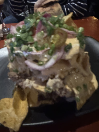 The service that followed was equally disappointing. It took 30 minutes for our appetizer to arrive and 1 hour for the main meals. We ordered nachos, which was decent. The two smash burgers with poutine were underwhelming. The poutine was dry, lacking in flavor and sauce, making it a disappointing side to the burgers. We also ordered steak and frites - steak was decent but nothing remarkable.