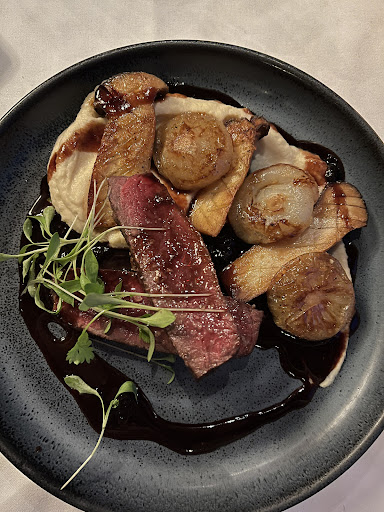 The menu leans into the local terroir, showcasing both finesse and creativity. To start, we indulged in oysters and microgreen salads, both exquisitely fresh and fully organic—a light prelude to the more robust courses to follow. The highlight of the evening was the venison, a beautifully executed dish that married the natural earthiness of the game with a playful assortment of sides. Wild mushrooms and marinated onions added layers of texture and depth, each bite offering something new to discover. The attention to detail and flavor was impeccable, a testament to the chef’s skill in balancing elegance and heartiness.