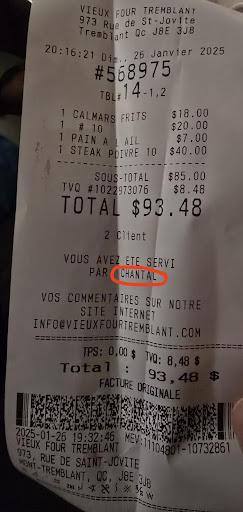 I’ve attached the receipt for 3 reasons: to prove that we were in fact unfortunate patrons of this fraudulent establishment to name and shame our particularly hostile waitress Chantal to show that we did in fact spend quite a lot, especially on the undeserved tip