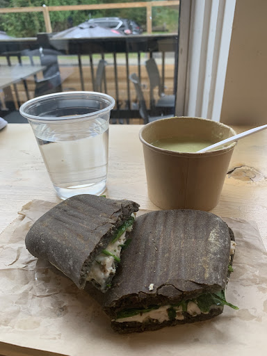 Read moreThis place is so cute! I try to go there whenever I am in Mt Tremblant. The sandwiches are great, but they also have very nice salads and desserts. I was so lucky today it was a gorgeous, very warm October afternoon, so I could sit on the terrace. I had a delicious cappuccino, and a very unusual, but great, matcha /white chocolate muffin. They also serve wine etcetera and the store is filled with really nice products for purchase. The decor is terrific inside as well, and a very nice bathroom everything is very clean and there are very well maintained posts to deposit your used dishes, trays, recycling, and refuse....