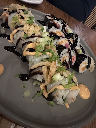 One of the best sushi restaurants I’ve been to thus far! Found myself wondering if I should give them four stars, since they’re not what one usually expects from the perfect restaurant, but there’s absolutely nothing wrong with this place! It deserves five stars and more for amazing service, great food, and an overall good time. Our waiter was super talkative and very caring, she managed our table splendidly and always with a smile. Everything arrived briskly and within good time, from the spring rolls to the bowls and combos. We even got delicious green apple candies with the bill! Yum! The food itself met all our expectations, I enjoyed the best bowl I’ve had in a while here with some wonderful homemade kimchi. We also ordered the 20 piece combo and that tasted delicious. 10/10 experience with the food. The atmosphere was very modern and somewhat cyberpunk, they had old magazines for menus, neon signs and stickers galore, and very boldly coloured walls. Very cool! Bathrooms were clean as were tables, and all decoration made for a surprisingly relaxing atmosphere. Came here at 4:00, took a seat at table by the window and had a peaceful lunch with the sun on my face. Would totally recommend, thanks so much for a...