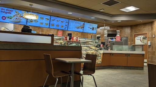 C’est le pire service que j’ai eu de ma vie. Je décide d’aller à ce Tim car c’était proche d’un rendez-vous que j’avais et que vraiment je voulais passer le temps vu que je suis de l’extérieur. Je commande un breuvage et un bagel. J’attends 40 min, je demande respectueusement à quelques reprises s’ils m’ont oubliés voyant des familles arrivés après moi partir avec leurs commandes de pizza, wrap etc, l’employé me réponds qu’elle ne comprends pas le délai non plus et s’excuse, le gérant veut donc mon reçu pour me le faire car il ne me croit pas ! La cuisinière qui m’entends décide de me le faire et vient me le porter, je la remercie et demande à parler au gérant, qui était parti à l’arrière car il pognait les nerfs après tout, je l’entends dire qu’il refuse de me voir, mais vient pareil après 2 min. Je demande un remboursement pour le contretemps, il m’offre de me rembourser toute ma facture ce que j’accepte, il me dit “tu penses partir avec ça gratuitement?” Mon breuvage est déjà entamé et mon bagel a une bouchée de prit, donc je lui réponds “oui?”, il prends les factures de plusieurs commandes qui sont éparpillés sur le comptoir, les jette par terre et prends mon bagel que j’avais mis sur le comptoir aussi pour le remboursement, et le jette à la poubelle!!! Plusieurs personnes on été témoins dont mon amie qui m’accompagnait. Il était très malpoli avec plusieurs autres personnes, il soupirait dans leur visage et criait après ses employés. Bref,...