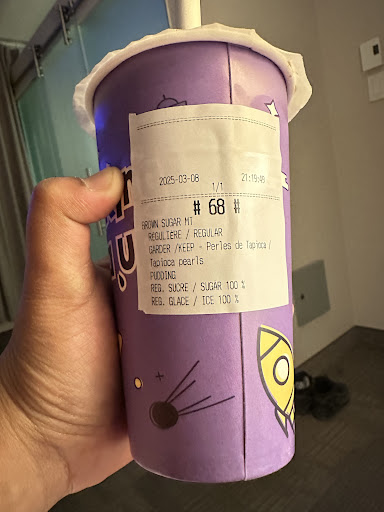 In the picture, the pearls are still stuck at the top due to how much ice they put in the cup before pouring my drink...