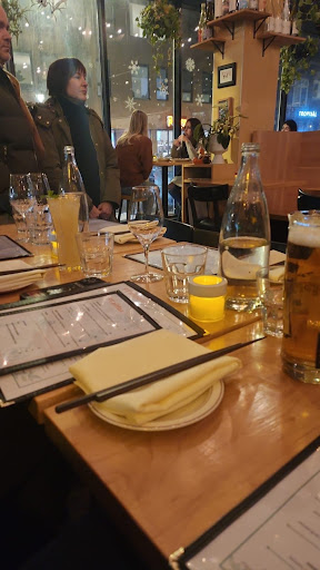 The dishes here are all quite good and the service with that blonde waitress is great as well but the dishes are really small here, so you may want to eat something first before going to this place or get ready to eat more at home even after having spent around $450!! (We ordered only 6 main courses, 4 appetizers, 1 beer and 2 cocktail drinks...