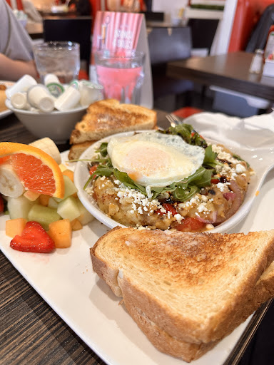 We went today, the hostess was smiley, friendly as usual. Our waitress in contrast was monotone, not smiley. Almost felt like it was a robot feeling. I thought hey, we're all different, she might had a bad morning. Whatever, it was respectful its fine. The low rating is because of the addition of the coming events... My breakfast arrived before my child's, by about 5 mins, not a big deal, but it had the time to cool down, before the other plate arrived. My toasts arrived cold, not even warm, cold, the butter was not melted. My child's order had brown bananas, like yes it happens, but I mean for a 12$ breakfast,serve me something fresh. If my child took forever to eat the banana, that's on us, but arrived brown, is just wrong and, the orange or grape fruit slice, was going bad, im unsure what it was. Like come on...