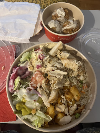 Where are the garlic potatoes (it’s bland not seasoned potatoes), where is the vermicelli rice (it’s pilaf with peas and carrots ?!). The chicken is so so dried it doesn’t even look from the stick. The falafel are dry , I don’t recognize Amir it’s like a 360 from what it used to be