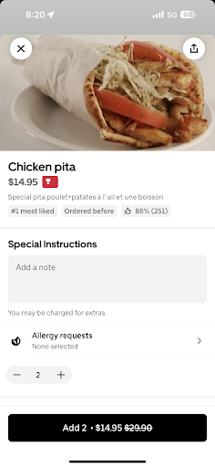 The worst was at the end when I went to pay. I explained the issue and showed her the menu and how it said chicken souvlaki pita. She was shocked as if she never saw this before. She lied and said she had asked the cook and even he said it didn’t exist yet now he clearly said of course it does. She said she was sorry and didn’t understand why I didn’t tell her I wasn’t happy and wanted to change my order. My boyfriend and I were in shock. We both asked for the correct order and she clearly said no it doesn’t exist.