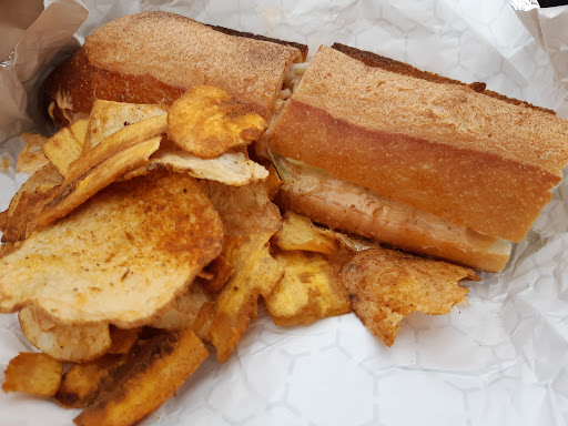 I had passed by this place on numerous occasions and kept thinking the elephant on the sign was so cute! I'm not generally interested in trying out sandwiches, but I was curious about the food after seeing that they are West African-style brochettes on nice bread. In Plateau, I find that there isn't very much culturally varied food around compared to other parts of the island, so I was really excited to finally try something different here. I had the half chicken-half beef sandwich and it was exactly what I wanted after walking around and shopping all afternoon. The meat was good quality, smokey and juicy. The poppyseed bread was also amazing, I wish I could buy demi-baguette here and take them home for breakfast! Can't wait to try the sesame kind next time. The fried plantain chips were crispy but light, a perfect sidekick to the sandwich. I also got a lemonade (made in-house, I believe) and I didn't realize this until I tried it but it had a lovely floral note of what I think is violet? I'd totally buy this to mix with gin at home. The owner also threw in some hot bofrot (little yeasted donuts with a bit of sugar) for me and my friend to share. A great desert if you're not into things that are too sweet. I'm so glad I ate here on a whim, it's great to know that during this time there are still new and interesting foods in the Plateau to...
