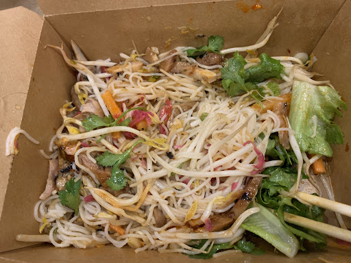 Read moreWeâve been here a few times and have eaten inside. Itâs more of a fast food style sit down over a restaurant. They have high tables and stools to sit on. This time we ordered the beef pot Thai and the barbeque chicken vermicelli with two imperial rolls. The imperial rolls Were not as crunchy as expected, kind of felt like they werenât made fresh on the spot. The dipping sauce was enjoyable. Even though youâre ordering to eat in, they serve your food in a box, not sure how I feel about that. I guess it could be a good thing if you canât finish your meal and would like to take it home with you. You have chopsticks option and they do also have forks if youâre unable to use chopsticks. The barbeque chicken was good. They offer either fish sauce or soya sauce as a dressing. The beef pad, Thai, however, was slightly more flavorful. Itâs best if youâre walking to this restaurant since parking can be difficult to find on Saint Catherine Street, itâs also possible to find a parking garage nearby to enjoy the...
