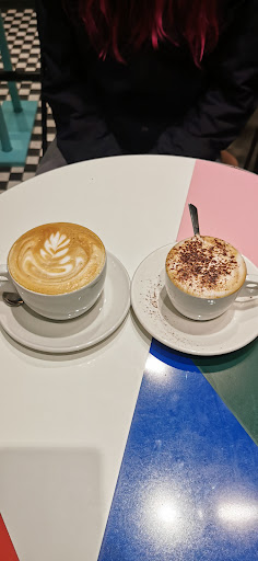They sell sandwiches, pastries, all kinds of coffees and beverages. They also sell products such as their own merchandise like t-shirt and their own coffee beans. They also import things like: Estathé, limonatto, Chocolate, H2O, Chupachups, etc. This place is beautiful for the retro fanatics, for photography, for a coffee break, to go with friends, etc. The coffee latte was amazing and the sandwich was amazing. It was a little spicy but not too much. The only observation for us remote workers here it’s not encouraged to use your laptop, it’s a coffee meant to be enjoyed with a friend or alone but to stay that time, not to work in your computer like other coffees make the ambiance to do. I recommend this coffee bar for a nice plan with a friend when we want to go somewhere...
