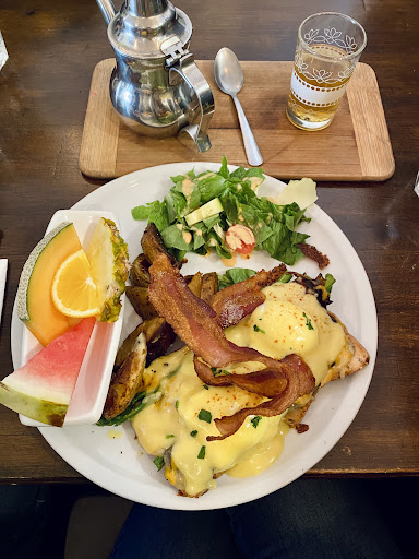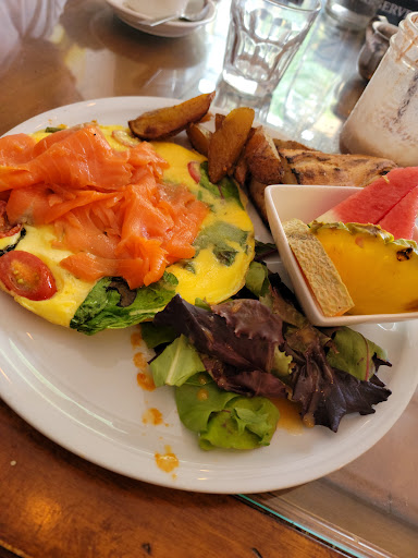 Read moreNous avions une réservation pour l’heure du dîner. Notre groupe est arrivé à l’heure, mais notre table n’était pas prête. Après quelques minutes d’attente un peu malaisante (nous étions coincés entre l’entrée exiguë et des gens déjà attablés), nous avons enfin pu nous asseoir. On nous a installés à une table à environ 3 mètres de la seule toilette du restaurant. Des bouteilles d’eau ont été mises sur notre table, mais nous n’avions pas de verres. Il a fallu environ 20 minutes pour qu’on nous en apporte. Enfin, nous avons pu commander nos plats et nos cafés. Malheureusement, la serveuse nous a seulement apporté la moitié des cafés et a sans doute oublié les autres; il a fallu les redemander. Pas non plus de salière ni de poivrière sur notre table; il a fallu en prendre sur la table d’à côté. Au final, de notre arrivée au restaurant jusqu’au moment où nos plats ont été servis, nous avons attendu au moins une heure et demie! C’est incroyablement long, surtout que le restaurant n’était pas bondé du tout; la moitié des places étaient libres! Était-ce dû à un sous-effectif? Bref, la plupart des gens de notre groupe ont bien aimé leur plat. Pour ma part, j’ai pris l’omelette au saumon fumé. Elle manquait cruellement d’assaisonnement et était très fade; j’ai dû mettre du sel et du poivre à plusieurs reprises pour la terminer. Je pense qu’il n’y avait aucun assaisonnement dans les œufs. J’ai aussi été déçu par les 3 feuilles de laitue et les 4 morceaux de concombre qui faisaient office de « salade », de même que par les 5 petits morceaux de pommes de terre, qui étaient bons, mais en quantité insuffisante. Au moins, le saumon fumé était très bien. Au final, entre l’attente interminable, mon omelette fade, le va-et-vient incessant de gens allant à la toilette juste à côté de nous et la difficulté à nous faire servir convenablement, j’ai trouvé l’expérience décevante. Seul point positif : l’ambiance conviviale était agréable, avec la cuisine ouverte donnant sur la salle à manger. Je ne suis pas cuisinier, mais honnêtement je peux sans problème me faire une meilleure omelette et une plus belle assiette pour une fraction du prix. Je pense que ce restaurant a beaucoup de potentiel, mais il faudrait sans aucun doute resserrer un peu vos façons de faire et revoir certaines de vos recettes. Les fines herbes, les assaisonnements et les épices, c’est pas juste pour faire...