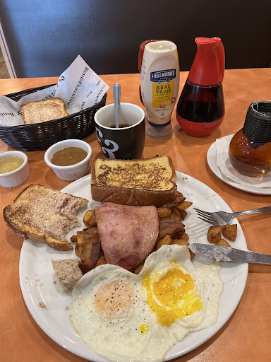 We've ordered foods and were left without coffee/tea for a while, I had to ask her colleague for it Kids food had juice included, but she forgot and I had to ask it She only shown up twice at our table: once for taking order, last time for bringing the bill Errors and mistakes happen, I understand, however she never had smile on her face and always seems rushed and rude to serve, as it we are not welcome Lastly and the worst part, due to bad service and altitude she had, I decided to tip only 2.50$ (and that's still about 7%, we ate for 35$), yet when she saw me not selecting 15% on the terminal, she said "the 15% button is here sir", then she took the terminal away and press the 15% and returned the terminal to me, effectively forcing me to give 15% tips, is that even legal?