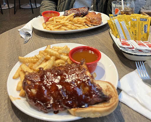 I did not expect the fries to be good and I was correct with that assumption. The ribs were fall off the bone but the bbq sauce was sweeter than I like. Dallas BBQ would slay in Montreal. The chicken was tender and crispy but bland. The onion rings were the star of the show. Crispy, not super oily, tasty. $65CAD for all including a pepsi. Tip separate. It was fine. Entrees came with cole slaw. I prefer KFC’s. Took a few bites and put it to the side. Service was good and there were no hiccups. The...