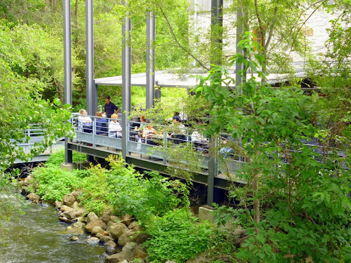 This place has had too many changes through the years. it went from being an amazing bistro and cafe to now, a cafeteria style / snack bar take out. However, that said, one can still appreciate the terrace (now, awning covered) overlooking the smooth, cascading river while also spotting a few interesting characters. Here the resident Heron as well as a female Woodpecker were seen. Two types of butterflies have been spotted: the 'Admiral' as well as the 'Mourning cloak. Hopefully you'll get a glimpse of them while sipping your coffee etc. Another tip: ask if you can have your food on the 2nd level of their building which is at...