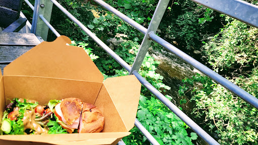 Read moreGreat little spot for a quick bite during long bike ride, we had the trio, ham sandwich (pressed) soup (carrot, broccoli potage) and salad, (greenery, tomatoes, cucumber etc.) all of that for 11.95$, very good price and a very good meal, they have ice cream (I saw a lot of ppl enjoying it) iced coffee, tea... try to get a spot next to the water, the sound is very appealing while eating, you're really part of nature in there, be weary of spiders, they're really out and about. The bathrooms are amazing, so well...