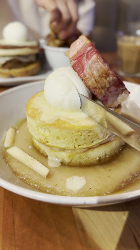 Read moreAt La Fabrique, the art of brunch transforms into a delightful spectacle, much like a culinary circus under the big top of taste! 🎪 Starting with their Pancake – not just any pancake, mind you, but a gastronomic escapade layered with apple puree and cheddar, and crowned with a soft boiled egg. Drizzle some maple syrup and voilà! It's like breakfast decided to dress up in its Sunday best. And let's not forget the sidekick – the extra Thick bacon, which could easily be the Robin to this Batman of a dish. 🥓