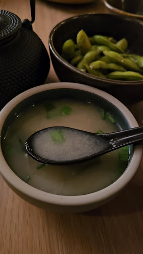 The konjac salmon was a standout, remarkably resembling the real deal. Their vegan salmon, convincingly mirroring its non-vegan counterpart, is a masterful creation. It deceived all our senses with its authentic taste and texture, leaving us in awe. The appetizers boasted rich flavors, and the addition of pesto to the arancini was a succulent touch. The miso soup, gently warm with a subtle infusion of mushrooms, introduced a delightful twist to the classic, offering a sweet and savory dimension that we savored as our initial course. Opting for the platters allowed us to savor a diverse array of sushi, and every bite proved sensational—a culinary canvas adorned with edible flowers and vibrant rolls. Thanks to the spicy mayo, the sushi rolls remained moist and didn't require extra soy sauce. Paid parking (on street) was available not far away for our vehicle.