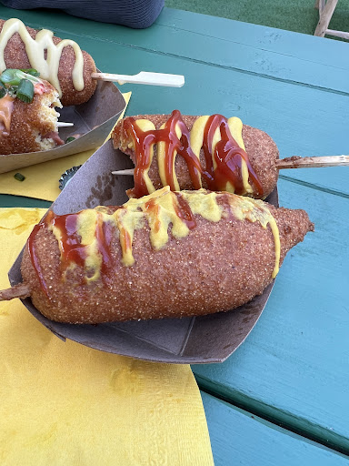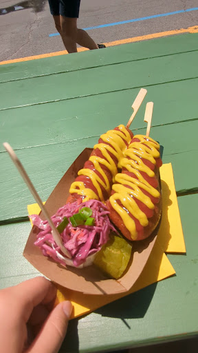 Des pogos. T'sais, genre une saucisse végane ben ordinaire, avec une panure pas très goûteuse, qui tenait tant bien que mal sur le bâton.