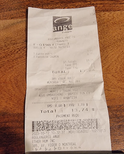 Read moreThe bakery is part of the Humanite hotel and is new and rather attractive. The food display is great with a large variety of breads, pastries, cakes pizzas etc. The two pastries ordered were very tasty but the coffee was not. It tasted bitter/burnt. I specifically asked that the 2 pastries that we orders will not be too "brown" since some of the pastries (and some breads) seemed to have been left in the oven a bit too long. While the cashier said yes, I ended getting overbaked pastries despite my request. The cashier was probably new and had difficulty finding the keys on the register for ringing up my order and did not know whether AMEXCO credit card was accepted. We were there at lunchtime while it was raining so the dining area was rather busy. We had to share the long table with barstools with others. To my surprise, the (only) two best tables that are couches for 4-6 people each around round tables were BOTH taken; each by a single employee on their meal break! The 2 employees did not even share one of these spacious tables that could have very confortably accommodate them both. I find it surprising (and in poor customer service) that the employees do not leave the "best" tables for the paying guests during peak times. One of them did not even bother to clean the table after her meal for the next user. Customer service training seems to be...