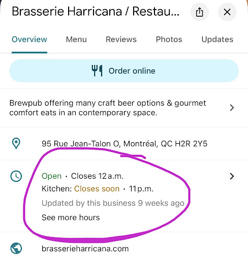 You know what ruins the hype of wanting to try a new pub? When said pub owner does not take the time to update their opening hours on google… Details: Hubby and I wanted to spoil ourselves after a stressful week and decided to come check the pub out. The pub’s kitchen closes at 11pm on Wednesdays (as per their google page). We arrived yesterday ~10:10 and were told that the kitchen closed at 10 and that the pub was closing at 11. We shared our confusion with the waiter and his reply was that the pub has been closing at 11 for a few months… Overall: I was feeling pretty excited to try this place as the reviews are decent but left I’m feeling quite disappointed by the experience, or lack thereof I guess… I have attached a screenshot of their opening hours yesterday for your reference.