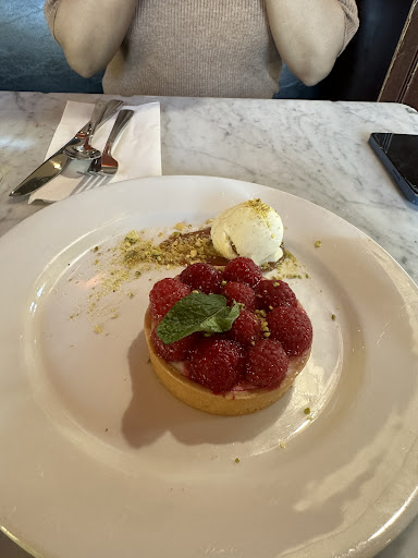 Read moreWriting this review as soon as I walked out of the restaurant. As a tourist, I never enter a restaurant unless I see the reviews which help me prepare myself for what to expect. I did not do that here unfortunately. I walked in because I liked the ambiance. I ordered a raspberry tart. Within 10-15 mins it was brought to us. The plate was covered in grease stains (please zoom in on the picture to see it). I did not complain, asked for the bill and left $15 cash. The waitress pointed it out to the bartender who reprimanded us for not leaving a tip, holding us in contempt. I pointed out the grease covered plate and from his expressions, it seemed obvious that he didn’t care or thought it was true. So, this picture is dedicated to the management of this restaurant. Provide a good service and then have the audacity to DEMAND a tip. Bad places have bad ratings...