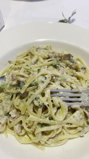 I eat it. Then came the Pasta carbonara. I had asked for spaghetti and received some flat noodles. They were cold and the sauce was like a thin lake in our plates. I returned mine. My husband ate them anyway ( I’m the picky one.) when you pay $38 a pasta plate, it better be good.