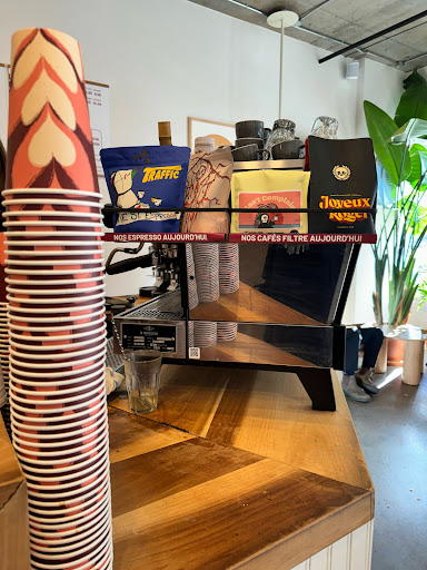 Read moreWhile when you walk in past the pretty terrasse, the lineup, to the left, of serious geriatric students of the internet are a little imposing (unless it is there is a seat for YOU and your MAC), this place (equipped with TWO pristine and functioning bathrooms! You could use both!) is pretty much a temple to good coffee (and good cheer). The baristas are charming and charmingly precise with their drinks, and never once have I had a milky flower design on my coffee that didn't seem absolutely necessary. True, it ain't free, but the cortado (providing they are using a servicable bean) is pretty superlative. Baked goods, good for the neighborhood, but croissants often deflated and somewhat salty. That said, it is EXCEEEDLY rare to find a flaky fresh croissant, in part because they are too MORTAL a pastry. The place used to be a little monastic with...what do you call them, teleworkers? But in recent years the vibe is good, the patio upbeat and fillled with pretty people in the good times, and the proximity to the...