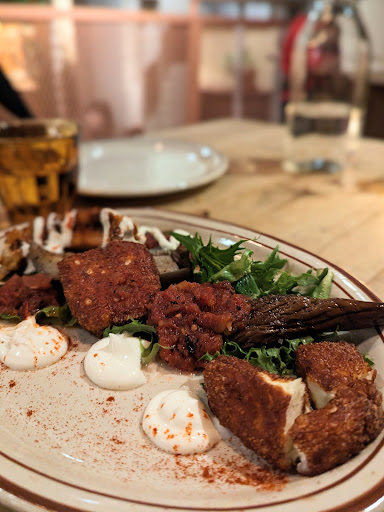 The goods: My date and I ordered individual pizzas (meaning that we were too selfish to share) and two salads (we shared those). She went with the veggie pizza while I chose the Italian sausage variety. So first, these pizzas are small, but since each dish is meant to be shared, I'm OK with that. I think that if you were dining alone and ordered a pizza + salad, you'd be good to go. Anyway, the sausage pizza was quite delicious. The only downside is that there was nothing hot about it. In terms of salad, we ordered the beet and the cauliflower. I enjoyed both, and the portions were actually fairly large so we had some leftovers that we just couldn't finish. I think it would be nice to have the beet salad served warm, but that's just my preference. One thing I will say - the cheese that is served with this salad (goat, I think?) was SO bloody good.