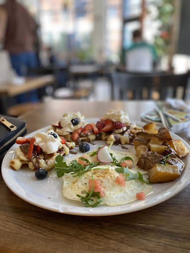 Read moreThis one was a hidden gem for us. We arrived there on a Sunday morning about 9:30 am. I don't know much about Quebec's customs but it was not crowded at all (unlike Ontario brunch places at that time of the day), probably half full. The crowd started around 10:30 am. Now when I tell you it was a hidden gem is because the surroundings of this place looked a little rundown and I'm not gonna lie, it felt sketchy. Funny enough after half an hour of being there we saw people jogging, biking, walking their dogs; it felt like a completely different neighborhood in a matter of 30 mins lol. The restaurant is beautifully decorated and it's super hard to miss with the impossing facade. The food was outstanding and the presentation, impeccable. The staff was so friendly and helpful. No complaints. Parking is not hard, but you need to park on the street, they don't have on-site parking. It was cool because we realized that on Sunday you didn't pay where we parked until 1pm and we could park right on the side of the restaurant.