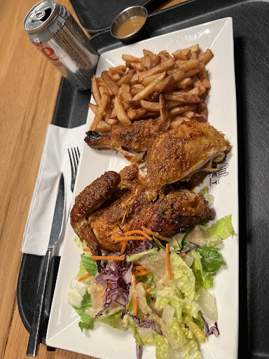 So I heard about this place called Time Out where it’s the third place in the world where you have essentially upscale food court in a mall. This is the essentially what Time Out is, mixed with numerous other sorts of food offerings but designed and owned by top restaurateurs and/or chefs. We went to CAMPO which was been said to be one the better places to eat Portuguese rotisserie chicken. We figured that since this is the brainchild of the famous Ferreira Restaurant it must be good. The outcome. Yes it was good, not great, not amazing but good. I think Toronto has much but restaurants like this than Montreal but such is life. The food was prepared quickly in the amount of time it took to find a table to be exact. How could this be so fast? They continuously cook chickens to an almost fully cooked state, then briefly place it back on the spit to refresh it - I think, or maybe not and it sits in a warmer. I say the second because our food came more warm than hot and fresh with a crispy skin texture. Which is one main reason why it’s not 5 stars. Moreover, the chicken had very minimal marinade (I imagine it’s Piri Piri) and there was no offer to provide a small container of sauce for dipping which it really needed for the white meat especially since it was quite dry. I also do not like when (typically inexperienced cooks) slice into my meals protein to check for done-ness. Likely another attribute to dry chicken. Ironically the dark meat thigh was done fine but the drumstick was hard and overdone. Aside from this the size of the chicken seems much smaller than most other rotisserie in Montreal or even Toronto for that matter Fries are reasonably good considering they said they are not home made, just the portion was quite small as was the delicious salad and its dressing but so small it was almost like a second thought. The other thing is product knowledge. The whole time out is mostly filled with very young and inexperienced staff and it makes you wonder people what the quality will be. In our case the server self admittedly no idea of what the food is, how it’s made, and had no sense of the product or pride in it for that matter. Somewhat of a turn off from a foodie perspective. We heard from many people that the chicken sandwich was amazing but we wanted to evaluate the chicken on its own, and perhaps smothered with other items and the sandwich roll its better I don’t know. All in all reasonably good food but for the price I would not go out of my way again to eat there as they are other better places to eat. But if I were there in the building let’s say, and didn’t want to try all the other great food options, I may try their sandwich as a last ditch to get a hot properly cooked chicken product. All in all I expected much much more from the owners at Ferreira - it’s not up to their standard at all from...
