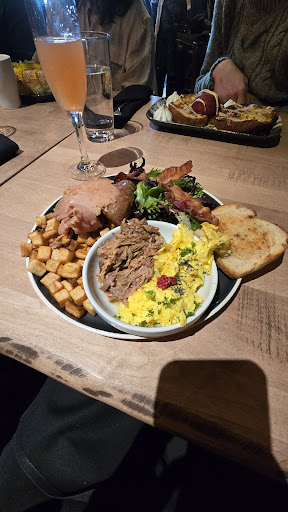 That aside, I was so disappointed by the food. My partner and I both had the Caribou plate, and everything was so bland and already cold when it came out. Had to ask for salt for the eggs and pulled pork. Even my toast was like cardboard. The only thing on the plate I really enjoyed was the sausage. Yes, it's a lot of meat, but for the quality and lack of flavor, it was very overpriced.