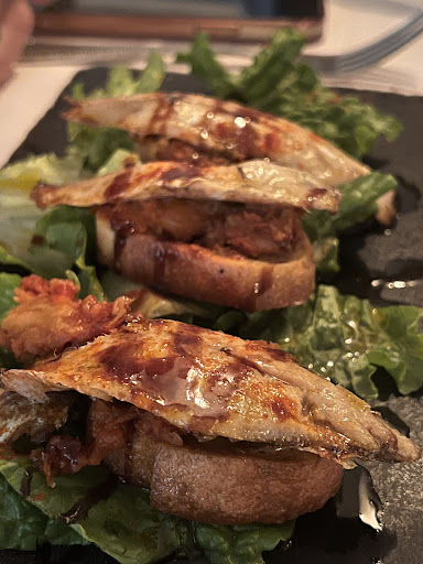 Calamari were actually quite good no questions there. My fish was absolutely loaded with bones. I’ve never had in any restaurant fish with bones, it was appalling. In addition to this, it was a bit over-grilled…. bead burned and “swimming” in oil, way too much of it.