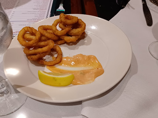 We ordered calamari for an appetizer for the group. The pictured microwaved, frozen garbage was delivered - the plate as shown is untouched by us. An absolute embarrassment. Starving, we ate it. Got in our orders - nearly everyone requested the most generic steak bavette- 1 or 2 brave souls ventured outside the box and got lamb.