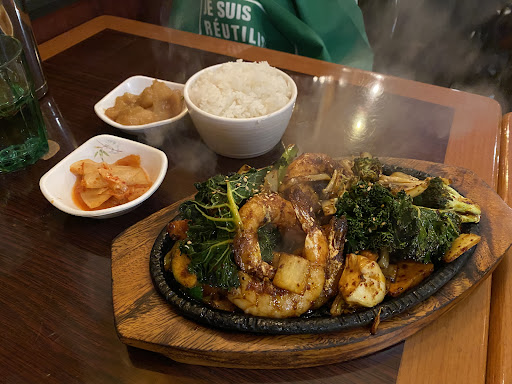 An almost hidden Korean restaurant in China Town Montreal, which is underground. And that’s why you may miss it for 4 years😉 Every time I go, the restaurant is packed, ajd the open times are limited. So be sure to check on Google maps before going there. A small plate of kimchi and some tasty potato is served as a complimentary side dish, to taste with your meal. I love their sauté which is served on hot iron cast plates, and when you are served, it’s still sizzling. I like to take a bowl of cooked rice with it, which makes it complete. They have a diverse menu, different Bibimbaps(which i haven’t tried yet ! But I saw on many tables, so it should be good too. They have the Korean alcoholic drink “Soju” which is a beer-like bottle with 15-16% alcohol, and they bring you shot glasses with that, in case you wanna share it with your companies.( unless you’re a heavy drinker, I’d say 1 bottle is enough for 2 people;) Unlike some other restaurants in China Town, whoask for cash or debit, they accept any kind of payment. And I tip usually 20% (it doesn’t make a big difference for me between 15&20%) but I think a minimum 20% is what they deserve, for the quality and their good service. Update: I went there again, and ordered 15. Soon Dobu Jjigae 순두부 (for 16$) Which is a kind of stew containing Silky tofu with pork and seafood, which Congress with a bowl of rice. It was really tasty, and a little spicy. I liked it so much. Near time I’m trying their...
