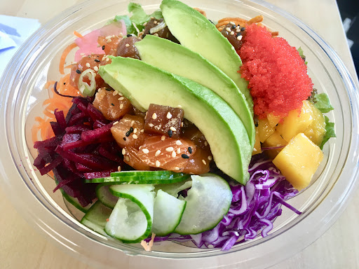 I ordered a poke bowl. It's packed with stuff, super loaded. You gotta give it a good mix at the beginning which is a bit difficult given how much stiff is in it. However, the fish quality is sub par. Definitely not high quality, definitely not fresh. I've never had so much chew and rubber type texture from a salmon. I'm not expecting melt in your mouth Michelin star here, but I'm not expecting to notice that the salmon isn't...