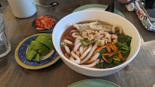 As someone who eats dumplings often, I found the dumplings a bit pricey for the quantity, but i'm very impressed by the quality of work that goes into the food from the two young women that own this place. The food is always fresh, made on the spot, dumplings done by hand, and delicious! The udon noodle soup is my personal favourite. The atmosphere is quaint and artsy and a nice quiet place. Perfect for students on the go, or who want to study a bit while grabbing a bite. My only complaint is the hours unfortunately. A lot of the time it says it's supposed to be open, but when I visit, it's closed. Very weird hours and so I often find myself avoiding it for this reason because I don't want to go out of my way, just to find it closed. It's really too bad because the handful of times i've gone, the service and food are always perfect.