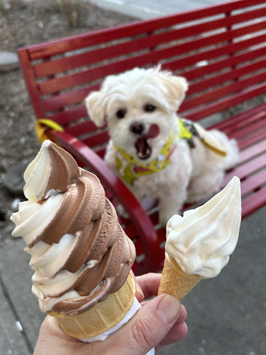 They have little tiny mini cones to put vanilla ice cream in to give the people’s dogs. They’re just nice people with really good ice cream. You need...