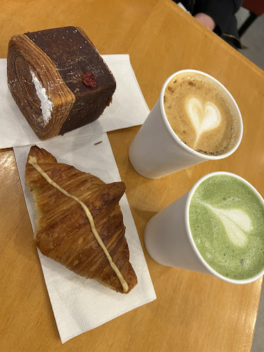 Absolutely splendid location. And for a multitude of reasons. This is a great spot in Montreal, Canada to go to for classic French tasting croissants. In addition to that, they have an amazing selection of hot and cold drinks. A must try if you are in the city of Montreal. Not only do they have croissants available in store, they have tons of drinking options. Menu can be located right near the pictures with all of the selections that they offer. They offer espressos, allonge, americano, macchiato, cortado, cappuccino, latte, mocha, chai latte, hot chocolate, matcha latte, and of course the classic Canadian "double-double". The coffee was a splendid choice to combine with a croissant amidst the chilly Canadian morning during this autumn season. I also love the fact that they outline the shape of a heart figure right on top of the coffee, that is definitely some skill! Their yogurt with berries was marvelous. Fresh, added with organic chia seed texture, and a hint of naturally occurring sugar in the variety of berries included. This place also has a lounge for many to chill out, do personal work, academic or professional projects, and is a great spot to come eat and socialize. Another great factor that makes this coffee shop suitable for work or leisure is that they provide the WiFi password upfront on their board so it makes it easy for the customers to log in. Followed along with easy to find parking, this makes this spot an easy to choose...