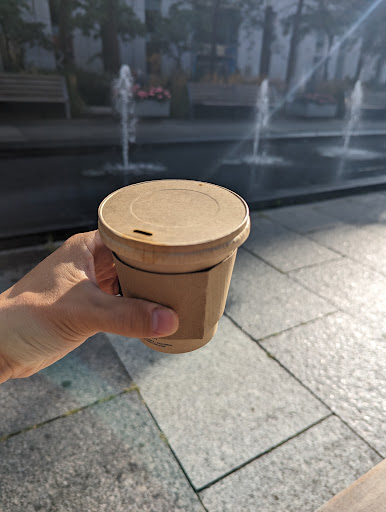 Trendy coffee shop with oversized windows serving baked goods & hot drinks with latte art.