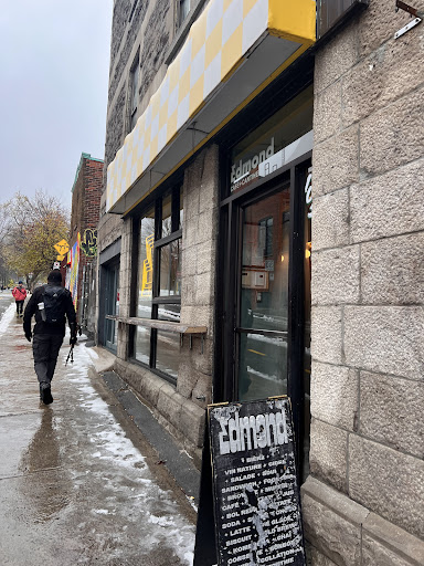 Mars succède à février. Ce dimanche, la météo était favorable à une mise du nez dehors. Dans notre élan d’optimisme qui nait de l’arrivée du printemps, nous enfilons donc des manteaux plus légers, mais une pointe de froid réussit quand même à nous surprendre, nous incitant à remettre le nez à l’intérieur. À l’extrémité ouest de la rue Rachel se terre bien confortablement notre hôte : l’Edmond, un café-cantine connu pour ses appétissantes déjeunettes.