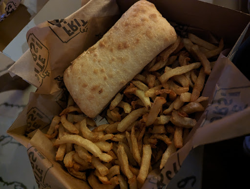 Finally, I was excited to see the "mitraillette" on the menu that is a belgian specialty. But then i opened the box and it was a side of fries next to a small ciabatta bred with two sad merguez.