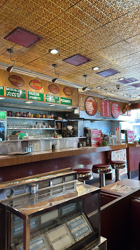 Caveat, we generally are not really into fast food, but we do like a good pastrami sandwich and wanted to try poutine, and love historic vintage places, so we decided to give Greenspot a try. The smoked meat sandwich and poutine were the best things we tried. I liked the squeaky cheese and the style of fries, both crispy and soft at the same time, but the gravy was a bit too salty. The smoked meat sandwich was stuffed with meat, like at Katz's Deli in New York and tasted great. The pizza which my son had oddly had the pepperoni under the cheese (maybe this is a Canadian thing). He enjoyed it. My daughter and husband shared a lasagna, but we were shocked to receive a massive family size portion with the lunch menu. But it was not great... There were dry inedible pasta edges, and parts where the pasta doesn't have sauce in between and it's just layers of cooked pasta stuck together. There were also a lot of whole cloves in the sauce for some reason, and my daughter hurt her tooth biting one. The minestrone soup that came with the lasagna was just average diner soup, possibly canned soup heated up. Overall, the meal was heavy and what you'd expect of an average diner. Not great but not awful. Also the lunch special was supposed to come with coffee and a dessert, which would have been way too much food, considering the massive portions, but I did notice that the waitress didn't bring it up and ask if we wanted it. On the plus side, it's cool to eat in a vintage diner, and I wish we had a coin to try the jukebox at the table. We didn't find out if they...